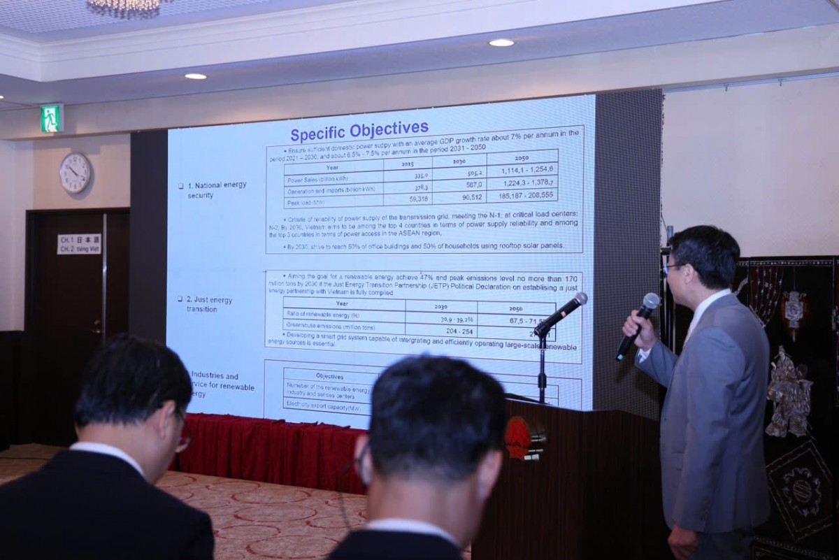 | Đại diện các doanh nghiệp, bộ ngành liên quan phía nước bạn Nhật Bản thông tin về tình tình kinh tế Nhật Bản cũng như giới thiệu các lĩnh vực tiềm năng mà doanh nghiệp Việt Nam có thể hợp tác, đầu tư |