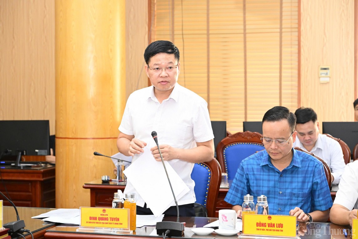 | Ông Đinh Quang Tuyên - Ủy viên Ban Thường vụ Tỉnh ủy, Phó Chủ tịch Thường trực UBND tỉnh Bắc Kạn báo cáo về tình hình phát triển công nghiệp, thương mại 7 tháng đầu năm, nhiệm vụ trọng tâm các tháng cuối năm 2024 và việc triển khai thực hiện quy hoạch ngành quốc gia về năng lượng, khoáng sản trên địa bàn tỉnh. |