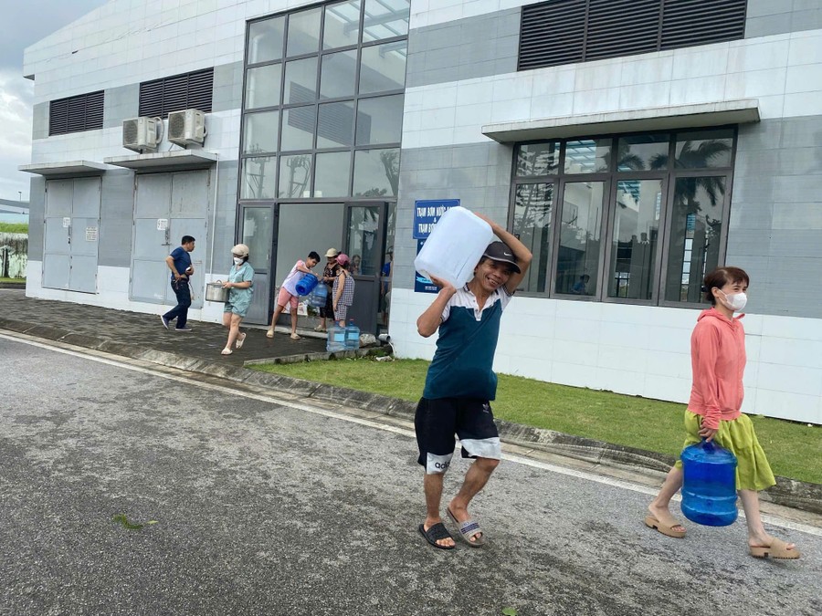 | Người dân Hải Phòng mang chậu, xô, bình đến tận cổng Nhà máy nước An Dương (Công ty Cấp nước Hải Phòng) để xin nước về sinh hoạt. |