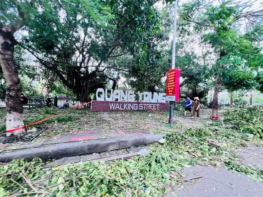 | Phố đi bộ Quang Trung ngập rác cành cây |
