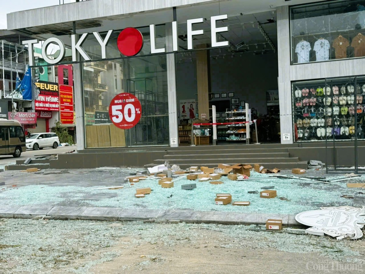 | Cửa kính ở một cửa hàng vỡ tan nát |
