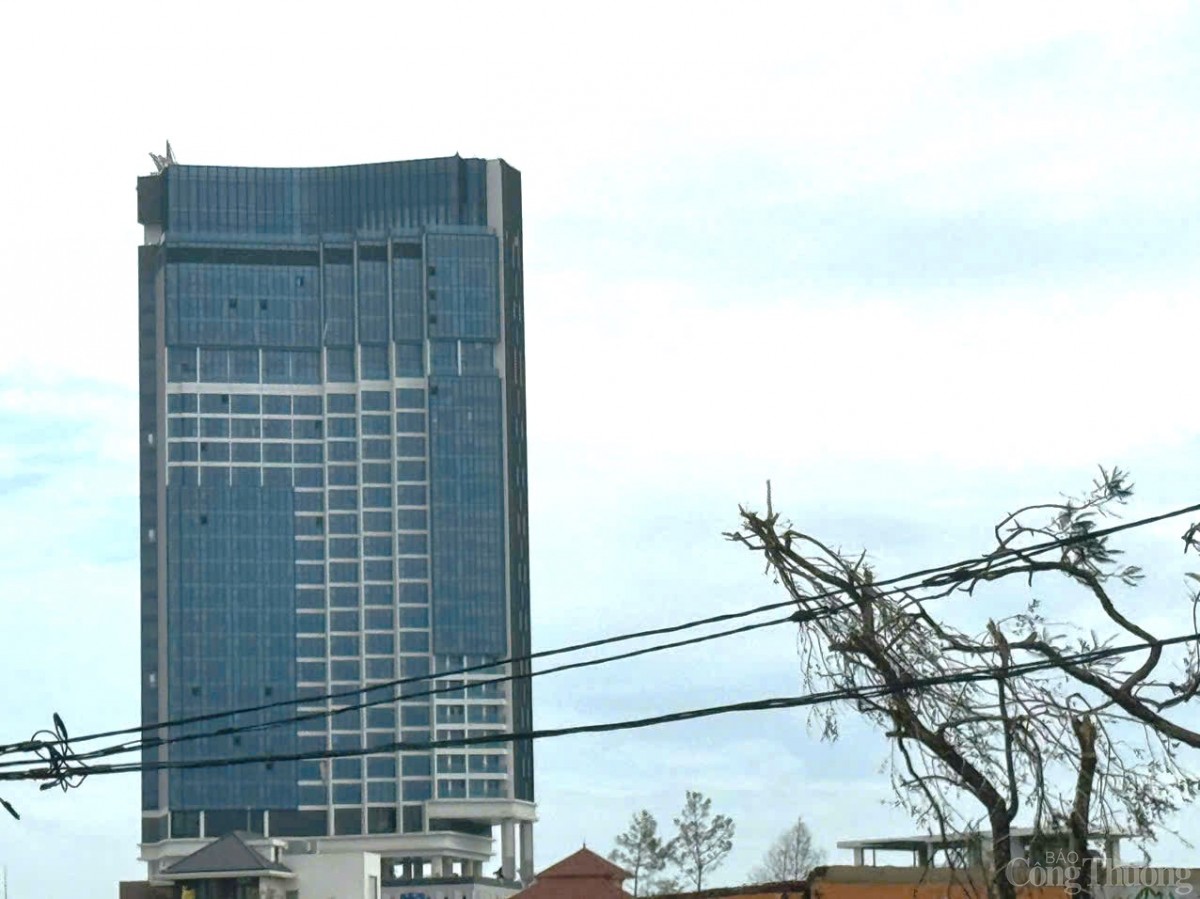 | Tòa nhà cao tầng bị gió bão thổi bay cả mảng tường kính |