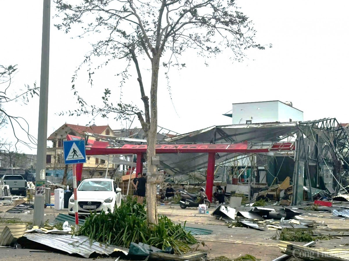 Ghi nhận của Báo Công Thương chiều ngày 8/9 cho thấy: Sau bão số 3, nhiều tuyến đường ở Hải Phòng, Quảng Ninh bị chia cắt bởi cây xanh đổ chặn lối đi. Rất nhiều ngôi nhà bị tốc mái. Cảnh tượng hoang tàn của thành phố cảng khiến ai cũng xót xa và khiếp sợ trước sức mạnh của bão.