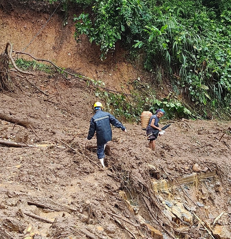 02 xã Khao Mang, Hồ Bốn của huyện Mù Cang Chải, tỉnh Yên Bái bị thiệt hại nặng nề, giao thông tê liệt. Trong ảnh, Ban Chỉ huy phòng chống thiên tai và tìm kiếm cứu nạn Công ty Điện lực Yên Bái đang có mặt tại huyện Mù Cang Chải để chỉ đạo công tác khắc phục hậu quả thiên tai, ngày 7/8. |