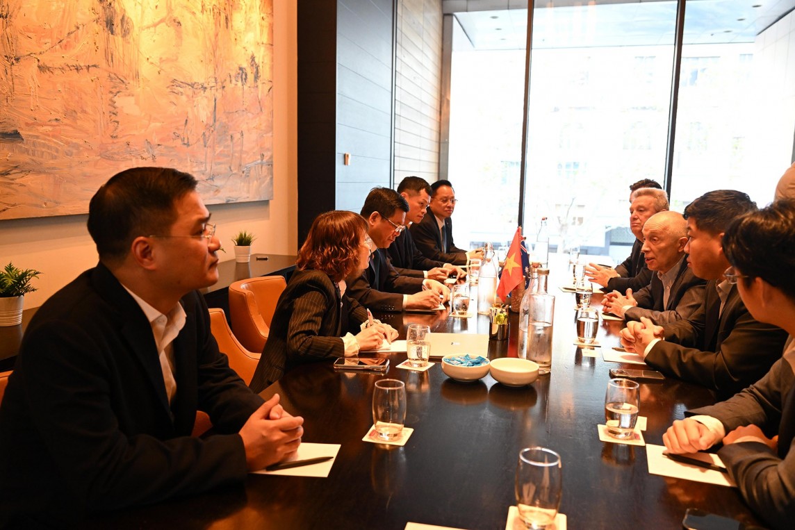 Ngay trước thềm Diễn đàn Doanh nghiệp Việt Nam-Australia, sáng sớm ngày 5/3, Bộ trưởng Bộ Công Thương Nguyễn Hồng Diên đã gặp gỡ, làm việc với một số doanh nghiệp, nhà đầu tư lớn tại Australia quan tâm tới đầu tư trong vực công nghiệp và thương mại ở Việt Nam như: Ông Manny Stul, Công ty Moose Toys; ông Jony Davis – Quỹ đầu tư Unified; ông Julius Wei – Quỹ đầu tư BMYG… |