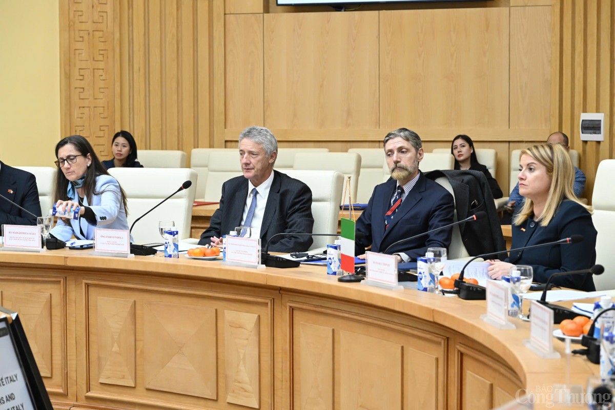 | Ngay sau buổi họp hẹp, Thứ trưởng Bộ Công Thương Nguyễn Hoàng Long và Thứ trưởng Bộ Ngoại giao và Hợp tác quốc tế Italia Maria Tripodi đã đồng chủ trì khóa họp lần thứ IX của Ủy ban Hỗn hợp về Hợp tác Kinh tế Việt Nam - Italia |