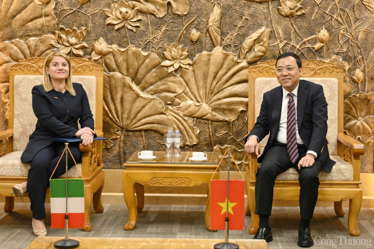 | Thứ trưởng Bộ Công Thương Nguyễn Hoàng Long và Thứ trưởng Bộ Ngoại giao và Hợp tác quốc tế Italia Maria Tripodi |