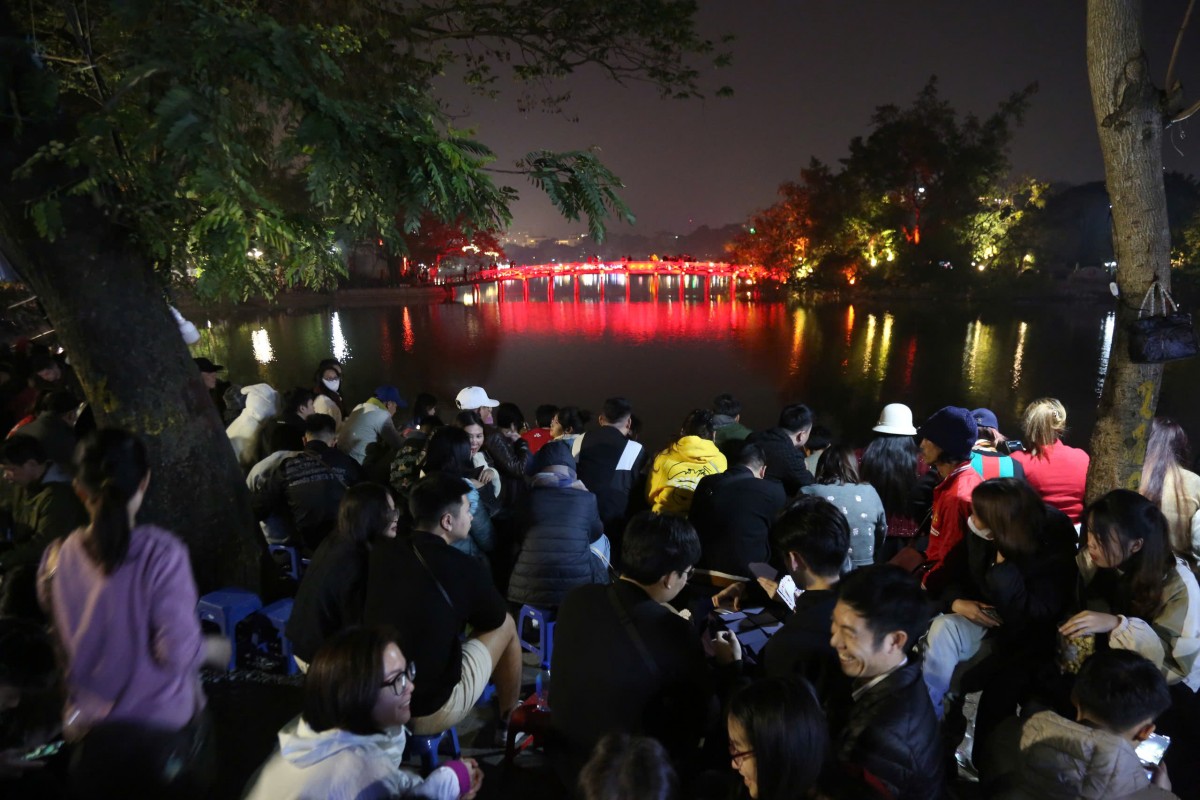 | Không khí chào đón năm mới tại khu vực hồ Văn Quán, quận Hà Đông cũng diễn ra náo nhiệt và sôi động. Ảnh: Hà Nội 24h |