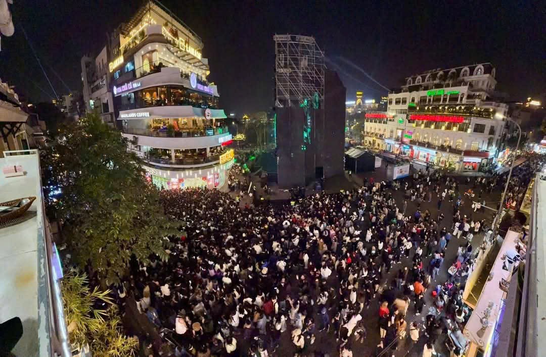 Dưới đây là hình ảnh hàng nghìn người chờ đón thời khắc giao thừa, xem bắn pháo hoa tại Hà Nội: