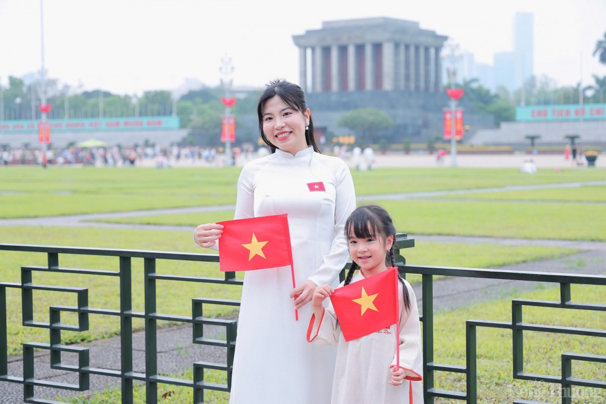 | Mẹ và bé cùng diện áo dài, lưu giữ khoảnh khắc thiêng liêng trước Lăng Chủ tịch Hồ Chí Minh |