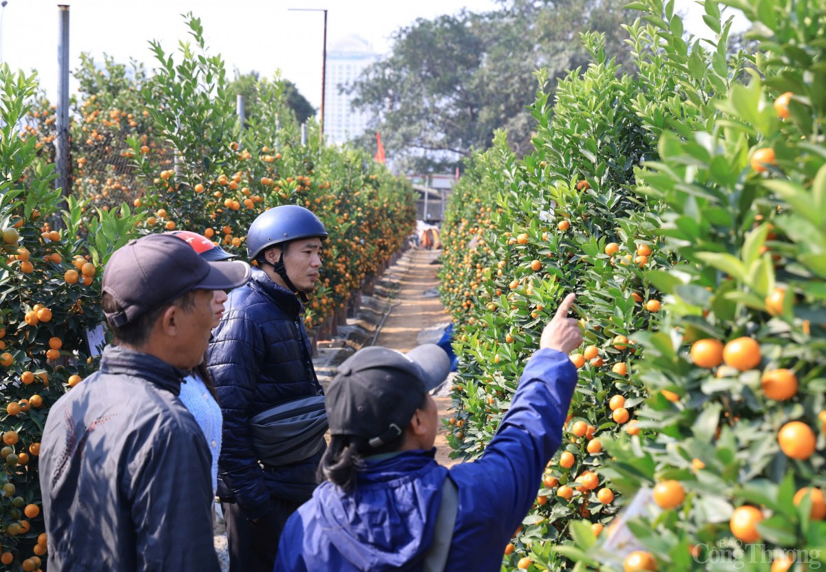 Nhiều thương lái đến vườn chọn quất đem về bán ở trung tâm thành phố phục vụ khách