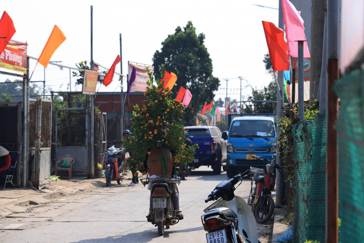 Những ngày cận Tết, làng quất Tứ Liên luôn nhộn nhịp, thậm chí tắc đường vì khách các nơi đổ về mua quất.
