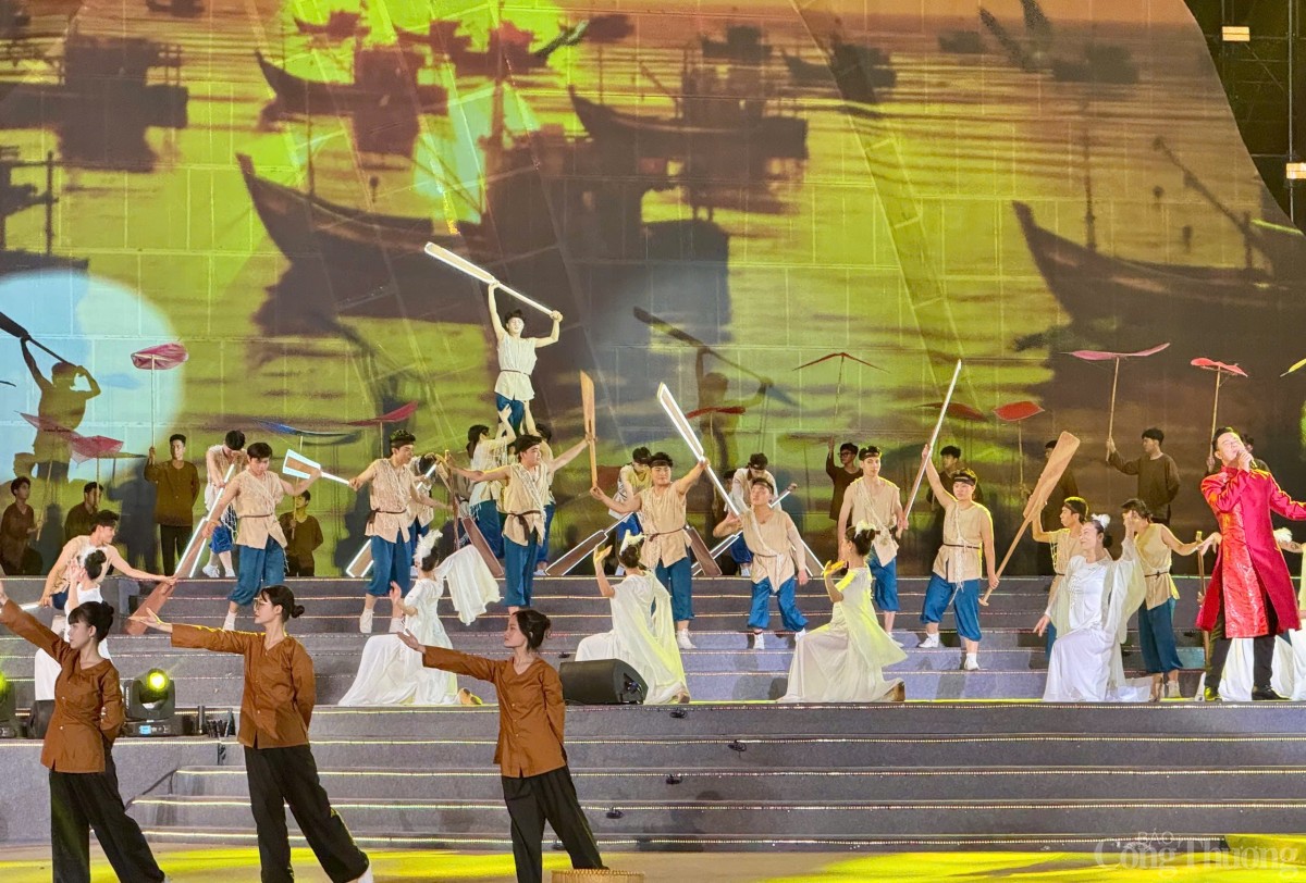 | Tiết mục biểu diễn tái hiện một Quảng Ninh kiên cường, vùng biển sáng ấp ôm những người con sinh ra từ sóng gió, mang khí chất hiên ngang như núi, dạt dào sức sống như biển khơi |