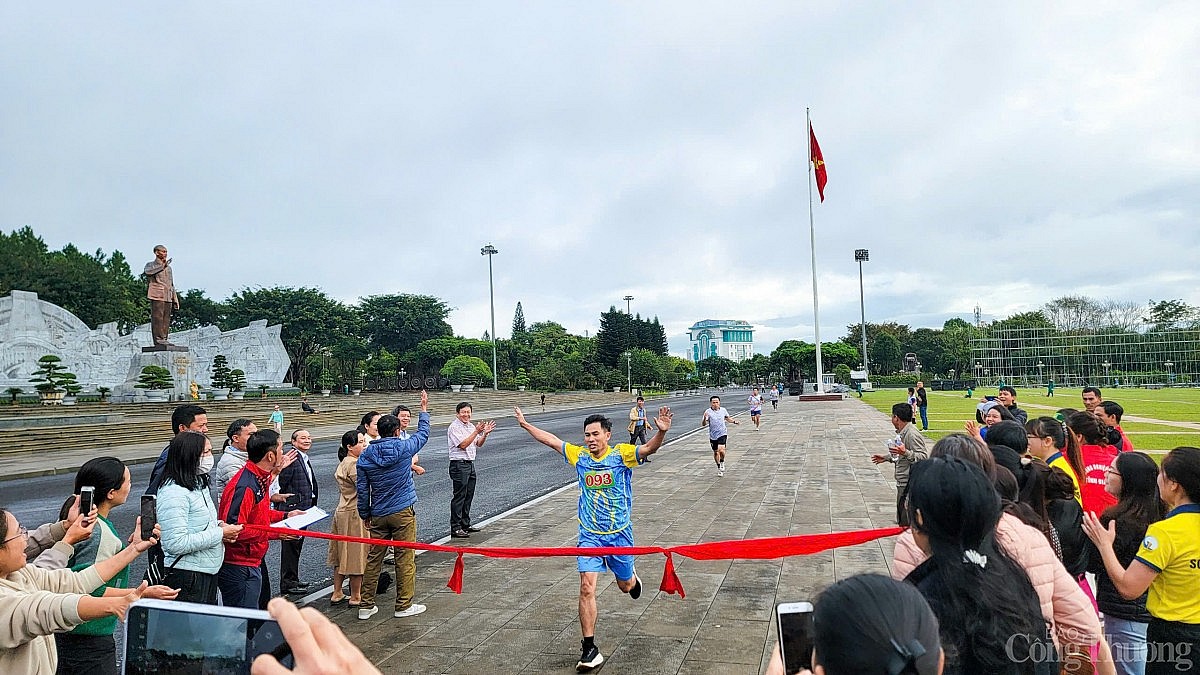 | Vận động viên Cao Quang Hoan (Ban Quản lý Khu kinh tế) xuất sắc giành huy vàng ở môn thi chạy việt dã. |