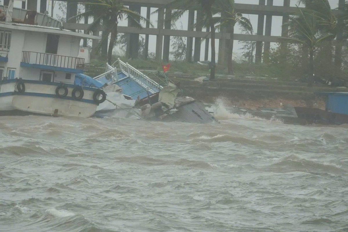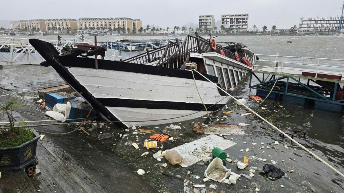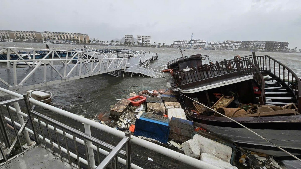 | Tại bến tàu Tuần Châu, thành phố Hạ Long, nhiều tàu thuyền du lịch neo đậu cũng bị bão đánh chìm, phá hủy |