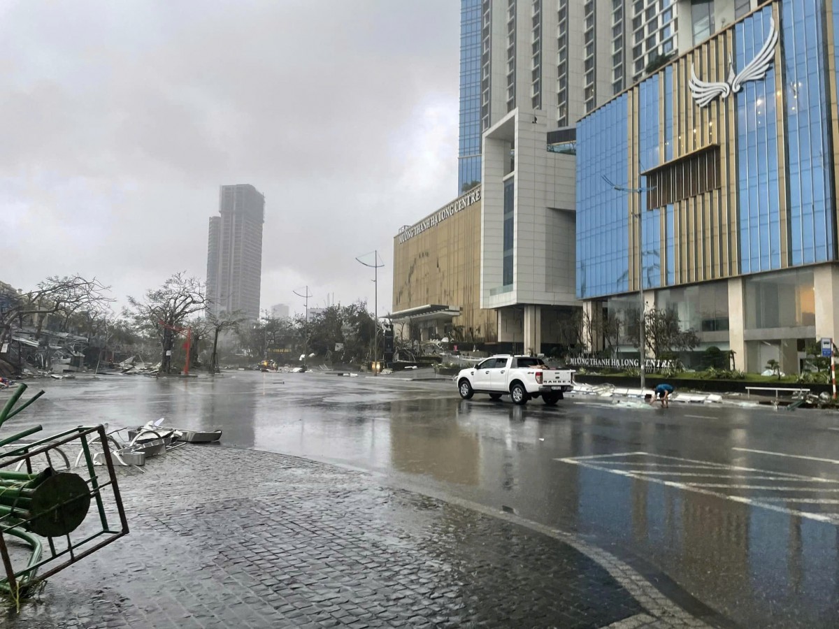 | Khu vực trước cửa khách sạn Mường Thanh Hạ Long hoang tàn sau bão |