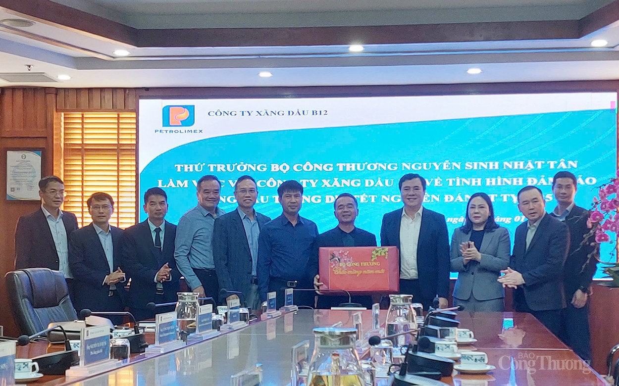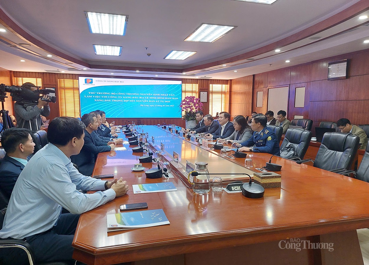 Theo đó, Thứ trưởng Nguyễn Sinh Nhật Tân đã làm việc với Tập đoàn Xăng dầu Việt Nam, Công ty Xăng dầu B12 về công tác đảm bảo nguồn cung xăng dầu phục vụ Tết Nguyên đán Ất Tỵ 2025 trong hệ thống của Tập đoàn trên toàn quốc và tại tỉnh Quảng Ninh.