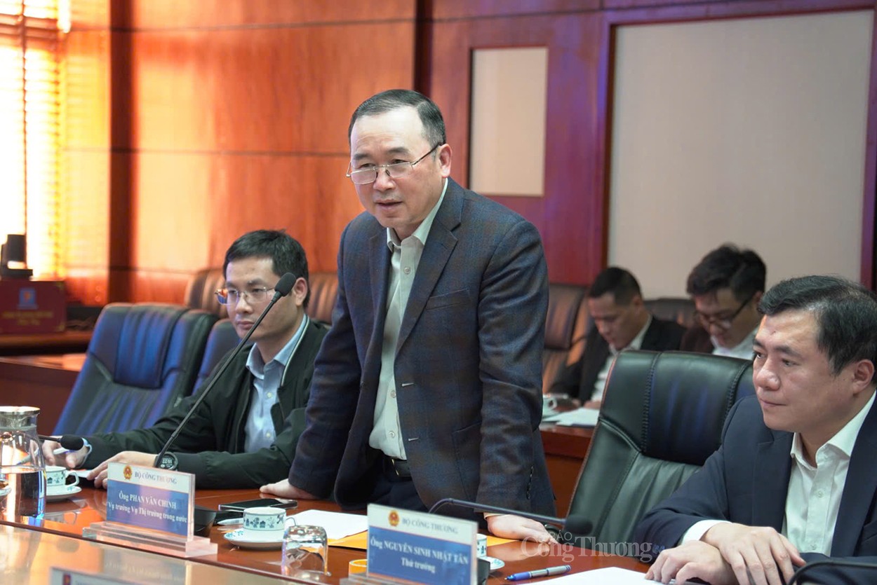 | Thứ trưởng Nguyễn Sinh Nhật Tân tại buổi làm việc |