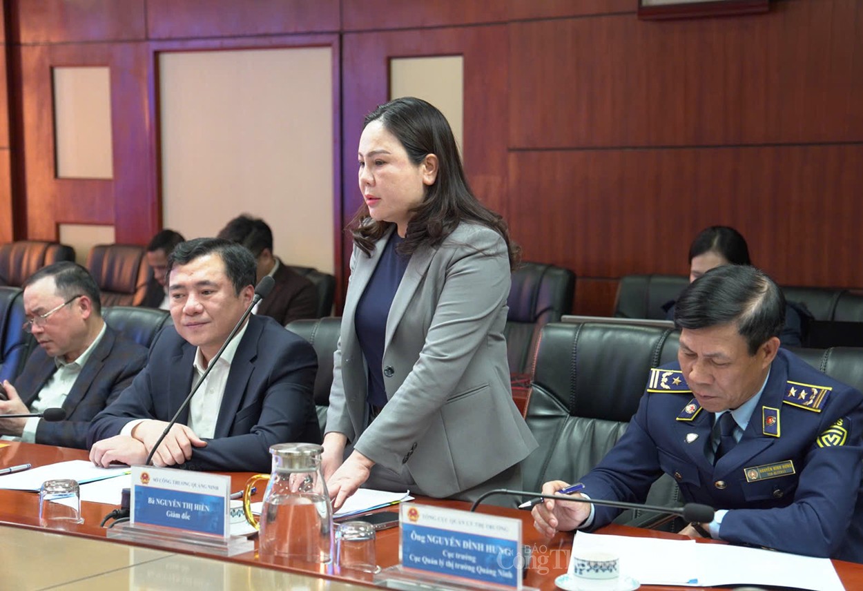 | Bà Nguyễn Thị Hiền, Giám đốc Sở Công Thương Quảng Ninh phát biểu tại buổi làm việc |