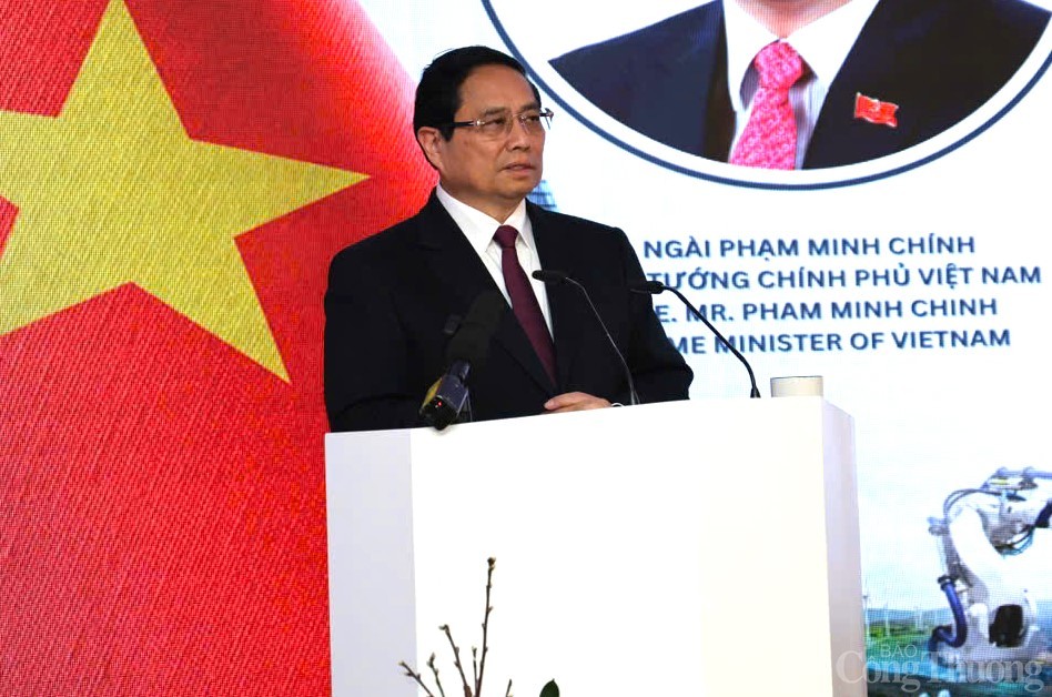 | Trong chương trình thăm chính thức Czech, sáng 20/1, tại Thủ đô Praha, Thủ tướng Phạm Minh Chính dự và phát biểu tại Diễn đàn doanh nghiệp Việt Nam-Czech. Ảnh: Dương Giang |