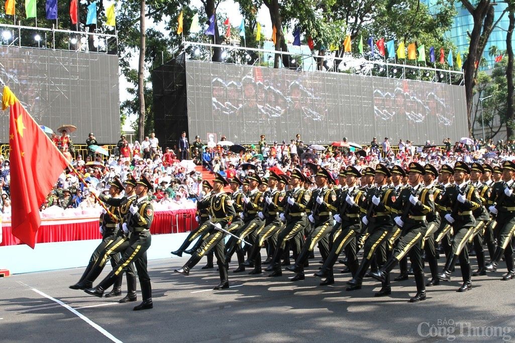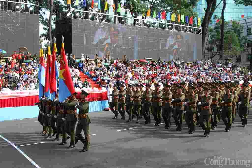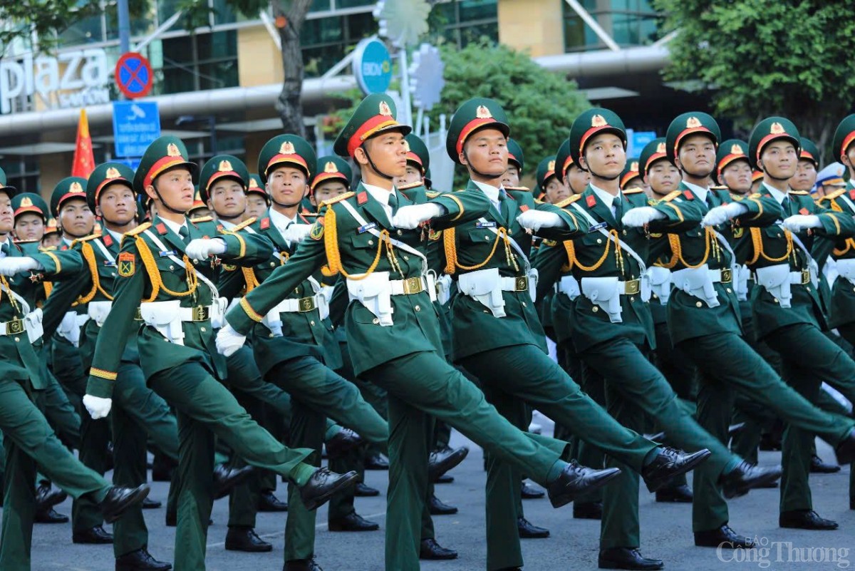| Khối sĩ quan đại diện 5 cánh quân tái hiện hình ảnh 5 mũi tiến công thần tốc trong chiến dịch Hồ Chí Minh lịch sử, góp phần vào công cuộc thống nhất đất nước ngày 30/4/1975. 5 cánh quân gồm Quân đoàn 1 - Binh đoàn Quyết Thắng, Quân đoàn 2 - Binh đoàn Hương Giang, Quân đoàn 3 - Binh đoàn Tây Nguyên, Quân đoàn 4 - Binh đoàn Cửu Long và Đoàn 232. |