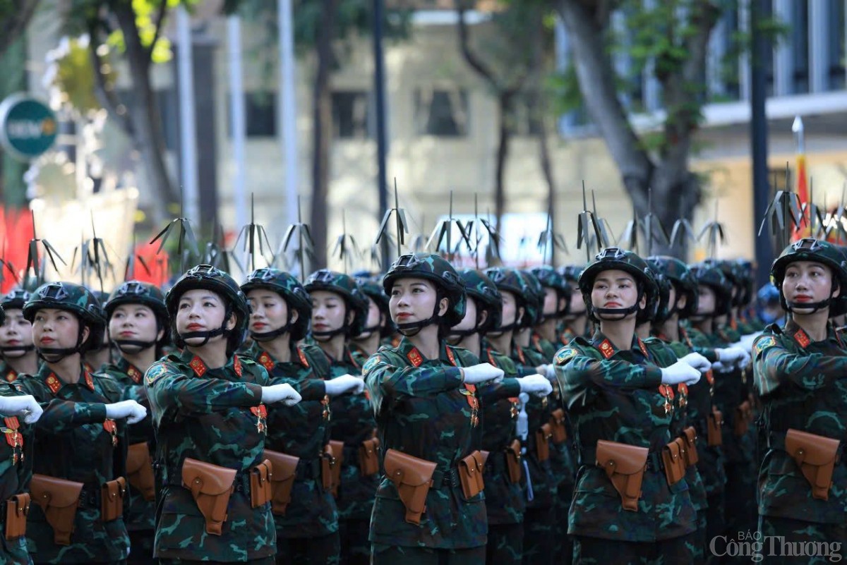 | Khối nữ sĩ quan thông tin đại diện cho lực lượng thông tin liên lạc của Quân đội nhân dân Việt Nam. Các nữ sĩ quan trong quân phục dã chiến màu xanh lục, mang găng tay trắng. |