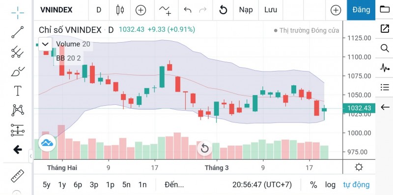 | Trước phiên giao dịch ngày 22/3, chỉ số VN-Index đang đóng cửa tại mốc 1.032,43 điểm |