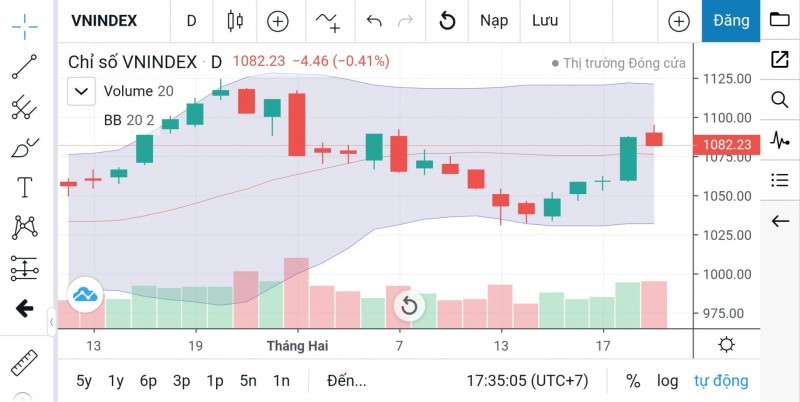 | Trước giờ mở cửa phiên giao dịch ngày 22/2, chỉ số VN-Index đang đóng cửa ở mốc 1.082,23 điểm |