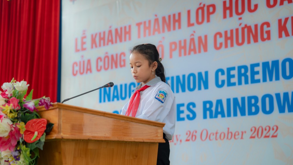 | Đại diện học sinh trường phát biểu bày tỏ cảm ơn tới sự quan tâm, giúp đỡ của Công ty Chứng khoán KB |