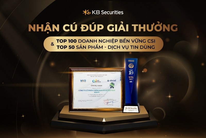 | Chứng khoán KB Việt Nam vinh dự nhận giải Top 100 doanh nghiệp bền vững 2023 ngay lần đầu ứng cử |
