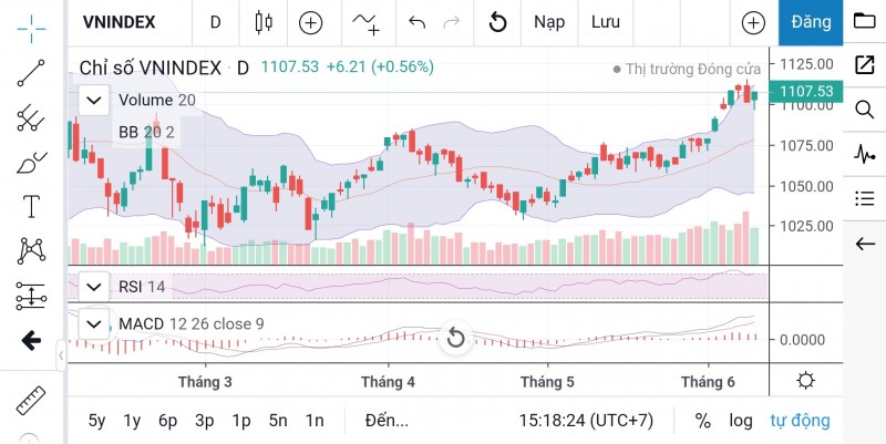 | Trước phiên giao dịch ngày 12/6, chỉ số VN-Index đang đóng cửa ở mốc 1.107,53 điểm |
