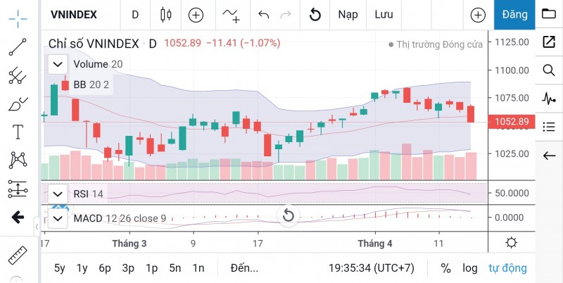 | Trước giờ mở cửa phiên giao dịch ngày 17/4, chỉ số VN-Index đang đóng cửa ở mốc 1.052,89 điểm |
