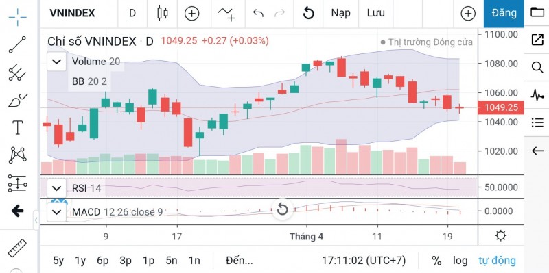| Trước phiên giao dịch ngày 21/4, chỉ số VN-Index đang đóng cửa ở mốc 1.049,25 điểm |
