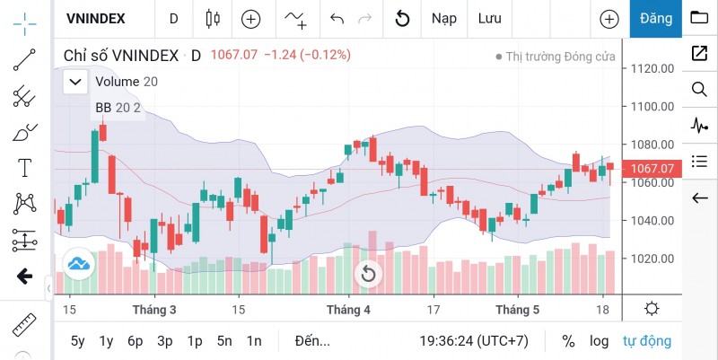 | Trước phiên giao dịch ngày 22/5, chỉ số VN-Index đang đóng cửa ở mốc 1.067,07 điểm |