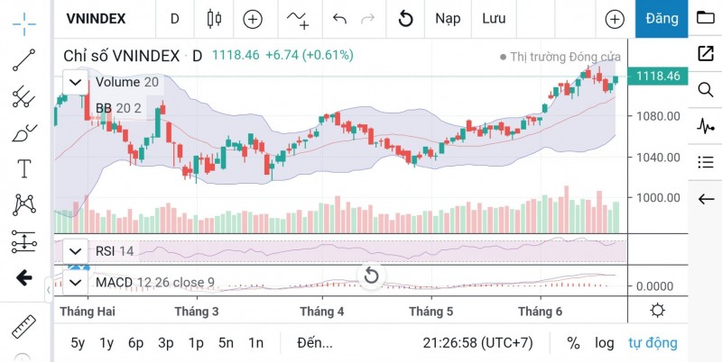 | Trước phiên giao dịch ngày 22/6, chỉ số VN-Index đang đóng cửa ở mốc 1.118,46 điểm |