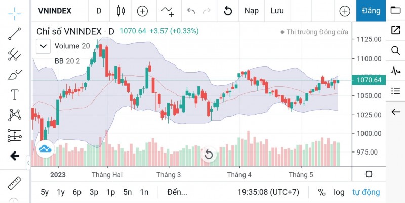 | Trước phiên giao dịch ngày 23/5, chỉ số VN-Index đóng cửa ở mốc 1.070,64 điểm |