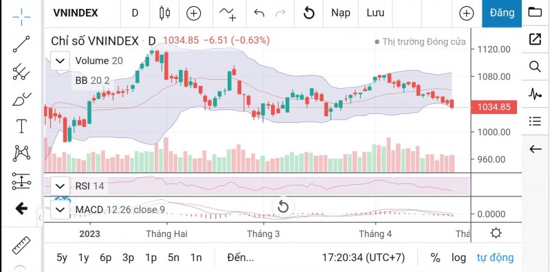 | Trước phiên giao dịch ngày 26/4, chỉ số VN-Index đang đóng ở mốc 1.034,85 điểm |