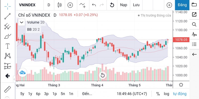 | Chỉ số VN-Index đang đóng cửa ở mốc 1.078,05 điểm |