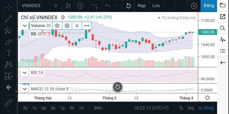 | Trước giờ mở cửa phiên giao dịch ngày 6/4, chỉ số VN-Index đang đóng cửa ở mốc 1.080,86 điểm |