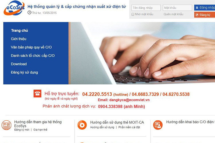 Theo Cục Xuất nhập khẩu (Bộ Công Thương), thay vì phải đến các cơ quan chức năng để xin cấp C/O như những năm trước đây, hiện nay, 100% TTHC xin cấp C/O của Bộ Công Thương được thương nhân sử dụng chữ ký số và khai báo trực tuyến trên hệ thống xuất xứ điện tử (eCoSys). Hệ thống eCoSys của Bộ Công Thương cho phép triển khai 2 hình thức, bao gồm khai báo nội dung C/O và lưu trữ dữ liệu trên hệ thống eCoSys; cấp C/O qua internet. Trong đó, việc cấp C/O qua internet giúp thương nhân có thể khai báo nội dung C/O và gửi đính kèm các chứng từ cần thiết qua internet thay vì nộp chứng từ giấy. Công chức tại các đơn vị được ủy quyền cũng có thể xem xét, kiểm tra hồ sơ đề nghị cấp C/O và thông báo kết quả xử lý cho thương nhân qua mạng.