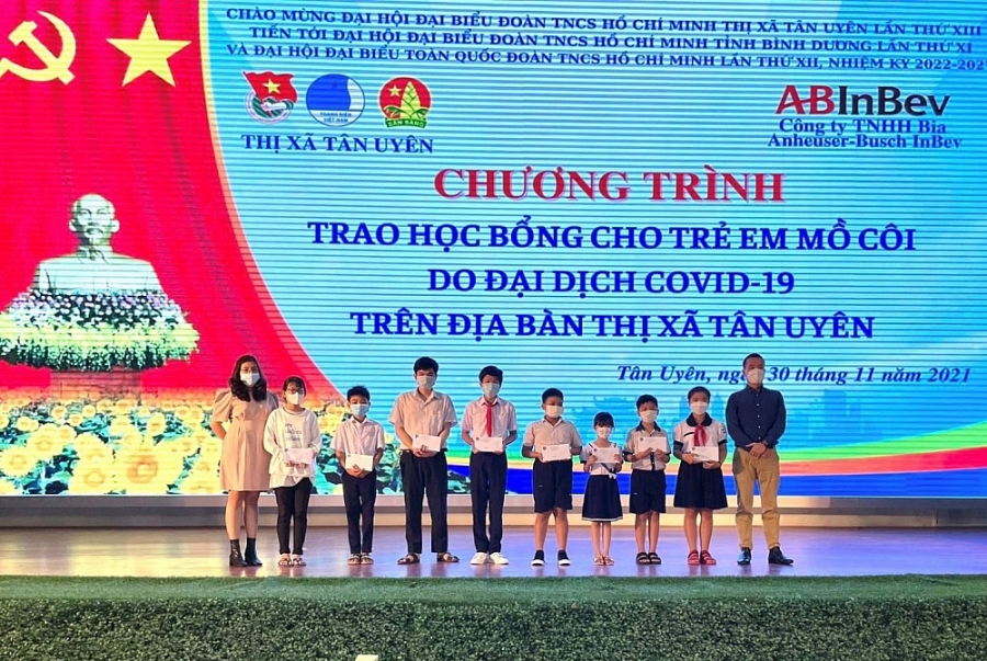 Tại Bình Dương, Công ty TNHH Bia Anheuser-Busch InBev Việt Nam (AB InBev) cũng đã chung tay góp sức cùng với Hội chữ thập đỏ thị xã Bến Cát và Đoàn thanh niên thị xã Tân Uyên tài trợ học bổng "Cùng em đến trường” cho 47 trẻ em mồ côi do dịch Covid-19. Mỗi phần học bổng trị giá 10 triệu đồng.