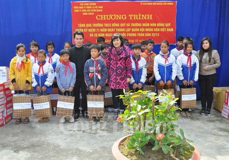 Nhằm giúp đỡ các em học sinh tại Trường mầm non và THCS Đồng Quý có điều kiện học tập tốt hơn, Đoàn TNCS Hồ Chí Minh Báo Công Thương đã phối hợp với các DN: Công ty Xăng dầu (Petrolimex) Tuyên Quang, Tổng công ty Thuốc lá Việt Nam, Công ty Home Credit Việt Nam, Trường Đại học Công nghiệp Dệt may, Công ty TNHH Hải Hà Kotobuki, Công ty CP Dược CPC 1 Hà Nội và Công ty TNHH Dược phẩm VNP tổ chức tặng quà cho thầy và trò 2 nhà trường. Các phần quà gồm: 20 suất học bổng, máy vi tính, bộ máy chiếu, áo khoác/áo len mùa lạnh, sữa, bánh kẹo và thuốc men...