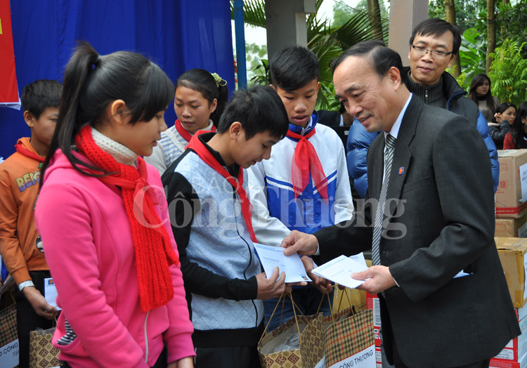| Phó tổng biên tập Báo Công Thương Trương Thu Hiền trao 20 suất quà cho các em học sinh nghèo vượt khó trường THCS Đồng Quý |
