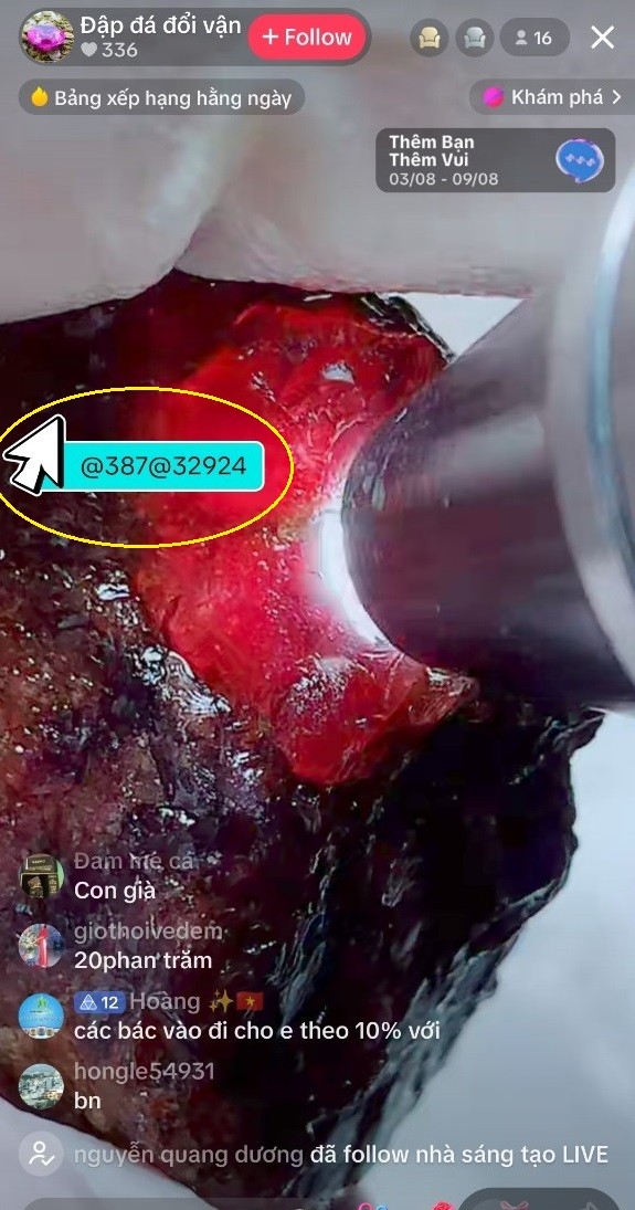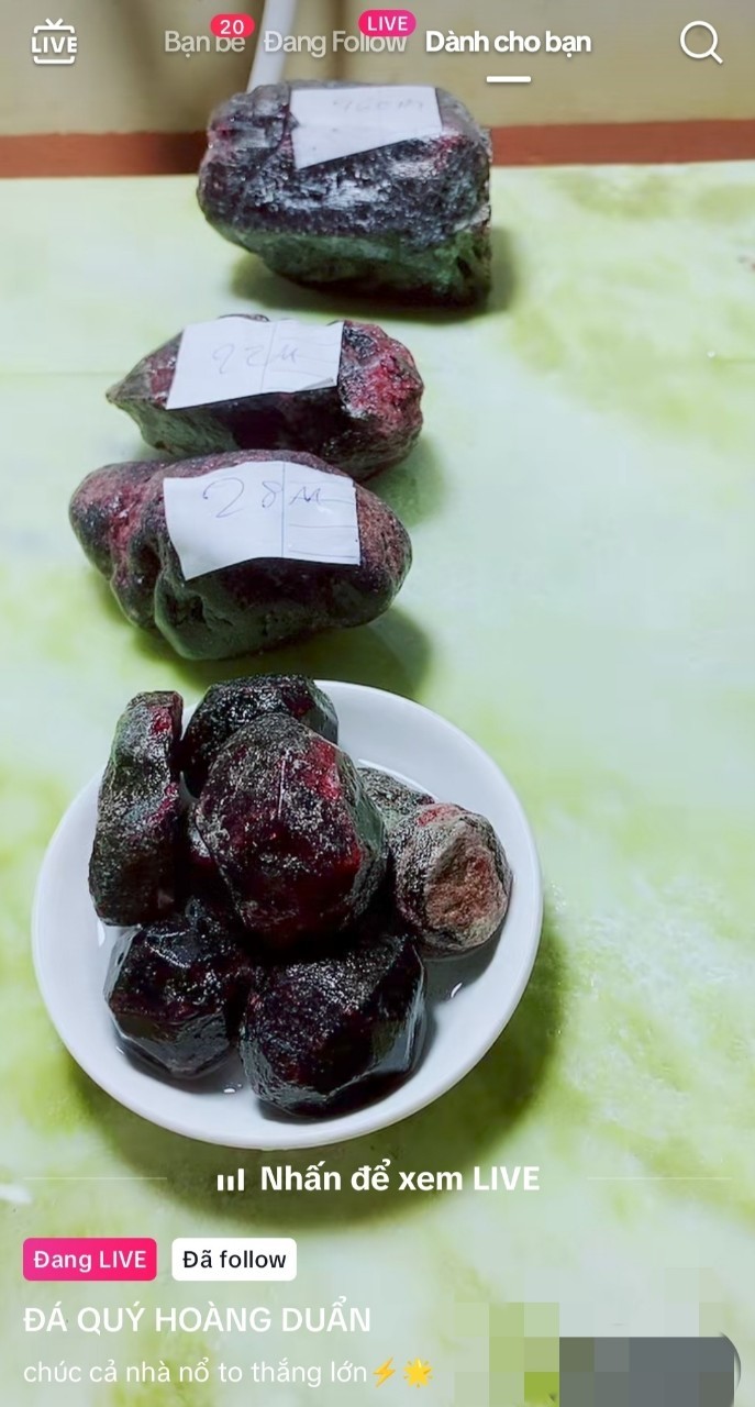 Trên nền tảng mạng xã hội TikTok hiện nay, xuất hiện nhiều shop online tổ chức các phiên livestream bán đá quý mập mờ thông tin nhưng vô cùng sôi động, hút khách. Các hoạt động này được nhiều chủ shop trưng ra các rổ đá hoặc các ổ đá quý có giá từ vài trăm nghìn đến vài chục triệu, thậm chí có lượt giao dịch chốt giá lên đến vài trăm triệu đồng để chào mời người chơi tham gia.