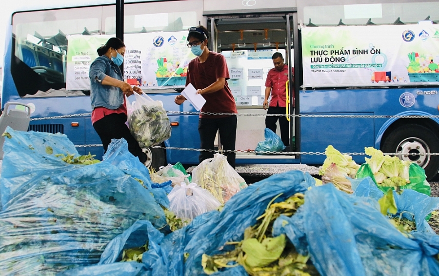 Thêm vào đó, rất nhiều doanh nghiệp, bà con tiểu thương chợ truyền thống khi mà 100% chợ truyền thống tại TP Hồ Chí Minh bị đóng cửa đã có giải pháp rất thông minh, sáng tạo trong việc thiết lập những điểm bán hàng bổ sung lưu động kết hợp với những doanh nghiệp, hệ thống siêu thị để cung ứng hàng hoá đến tận tay người dân.