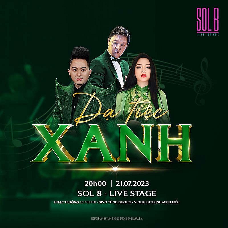 Đêm nhạc "Dạ Tiệc Xanh" sẽ diễn ra vào tối 21/7 tại SOL 8 - Live Stage (số 8 Nguyễn Công Hoan, Hà Nội).
