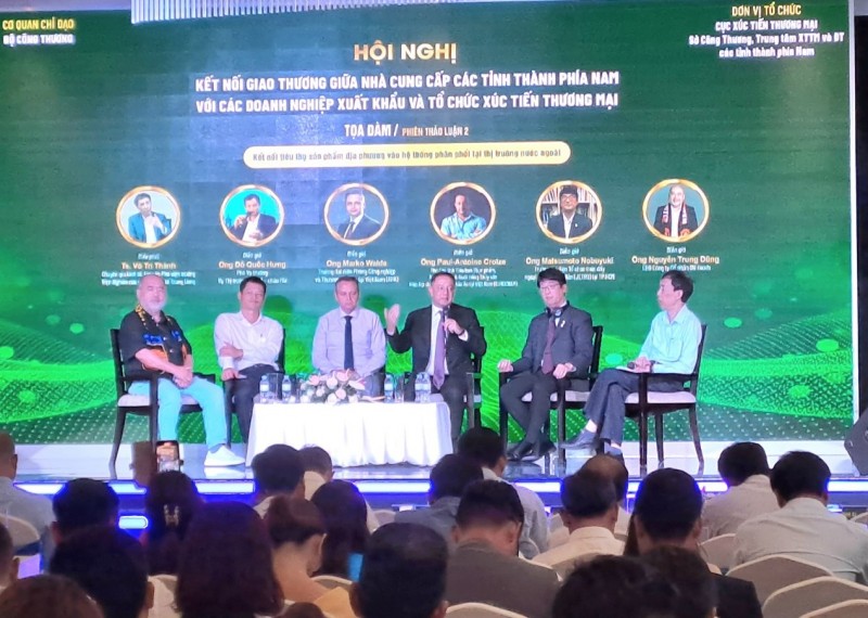 | Các địa biểu chia sẻ tại Hội nghị kết nối giao thương giữa nhà cung cấp các tỉnh thành phía Nam với các doanh nghiệp xuất khẩu và tổ chức xúc tiến thương mại |