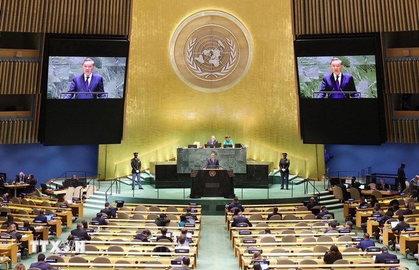 Tổng Bí thư, Chủ tịch nước Tô Lâm phát biểu tại Phiên thảo luận chung cấp cao Đại hội đồng Liên hợp quốc khóa 79. (Ảnh: Lâm Khánh/TTXVN) |