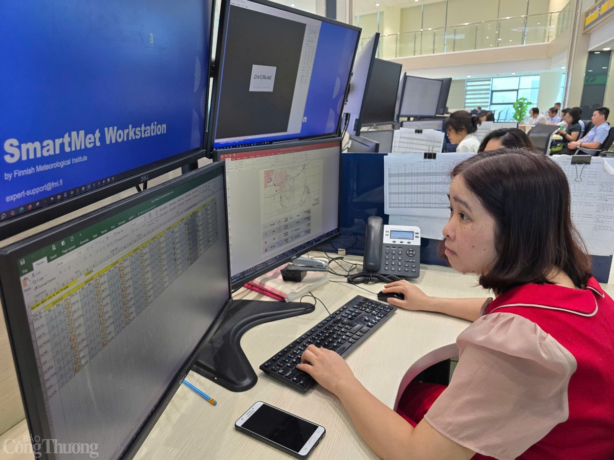 | Cán bộ tại Trung tâm Dự báo khí tượng thủy văn quốc gia đang phân tích thông tin dữ liệu |