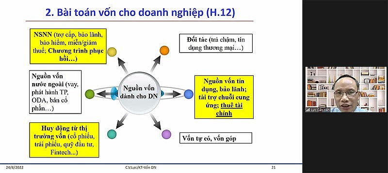 Về bài toán vốn cho doanh nghiệp, TS Cấn Văn Lực cho biết hiện nay thị trường vốn đang có 6 dòng vốn khác nhau, bao gồm ngân sách vốn nhà nước, nguồn vốn nước ngoài (vay, phát hành trái phiếu…); huy động từ thị trường vốn (cổ phiếu, fintech, quỹ đầu tư…); vốn tự có; nguồn vốn tín dụng, bảo lãnh và vốn từ đối tác.